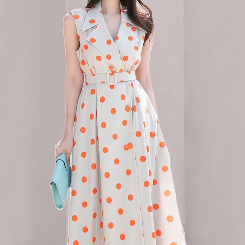 女性の夏のサンドレス水玉ドレス2021ホリデーノースリーブマキシドレスローブ サマー 夏物
