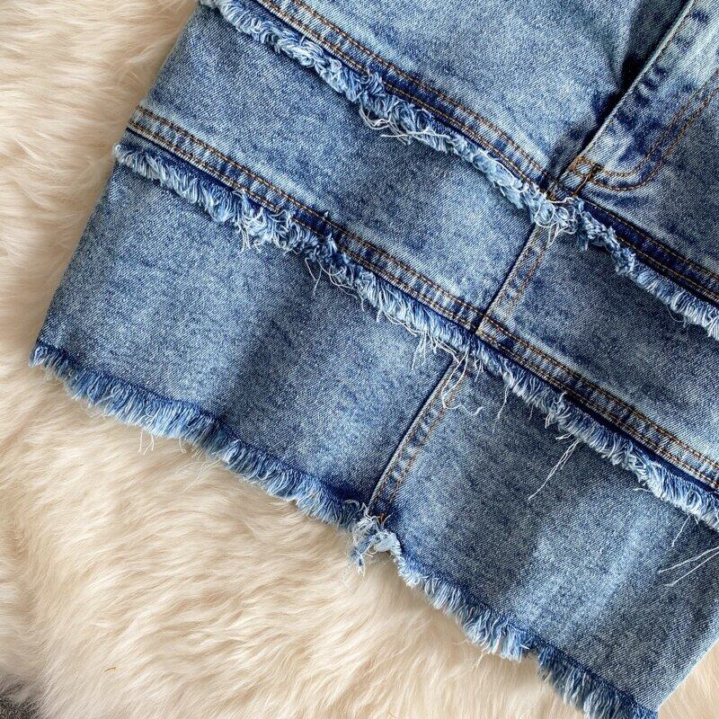 女性の夏のデニムの服は、ショルダーシングルブレストカウボーイクロップトップス+テルスカートジーンズツーピーススーツをオフに設定します サマー 夏物 オフショルダー
