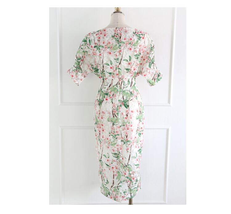 ヴィンテージプリントスリムドレスレディーススクエアカラーノースリーブウエストプリントフローラルトランペットドレス 花柄 スクウェア ビンテージ