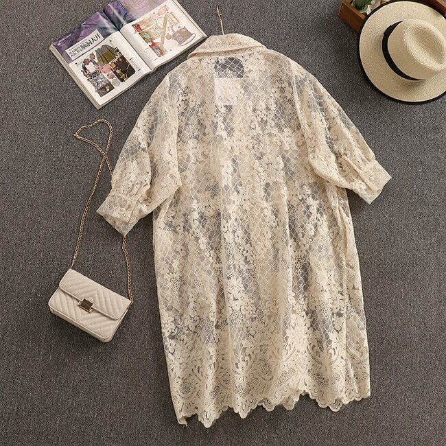 女性フルスリーブホローアウトスモールフレッシュスタイルルーズコート2021サマージップレース刺繡コートビーチホリデー 刺繍 夏物