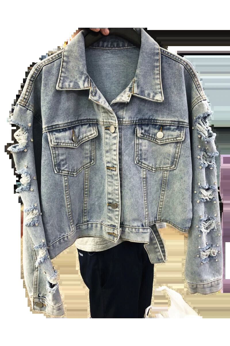 プラスサイズパールビーディングショートデニムジャケットレディースホワイトウォッシュロングスリーブヴィンテージジャンジャケットボンバーデニムコート 長袖 大きめサイズ 真珠 ビンテージ