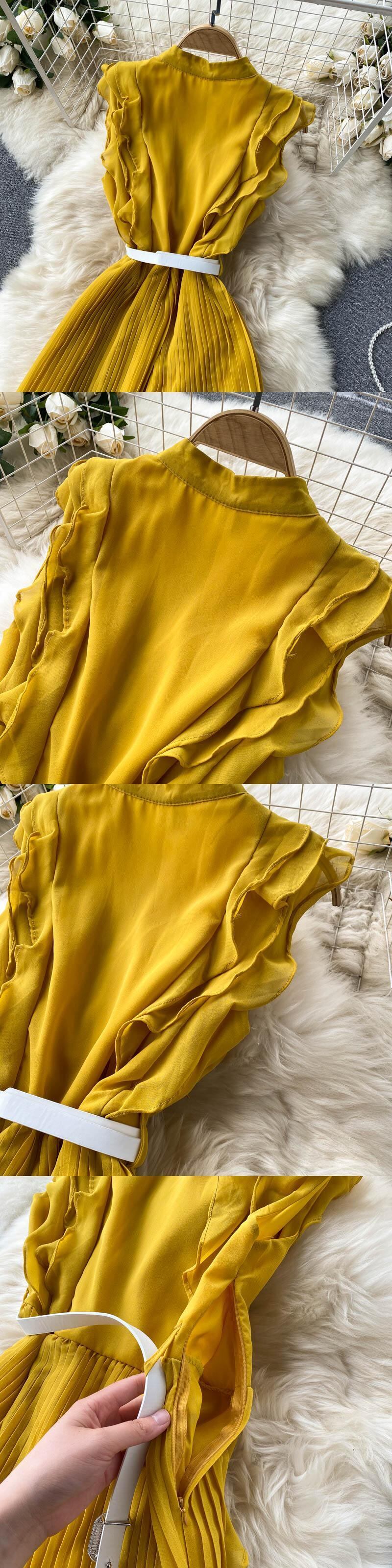 女性プリーツマキシドレス秋のノースリーブAラインドレスストリートウェアロングドレス オータム 秋物