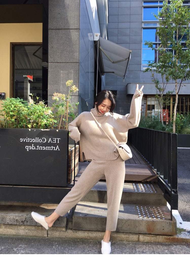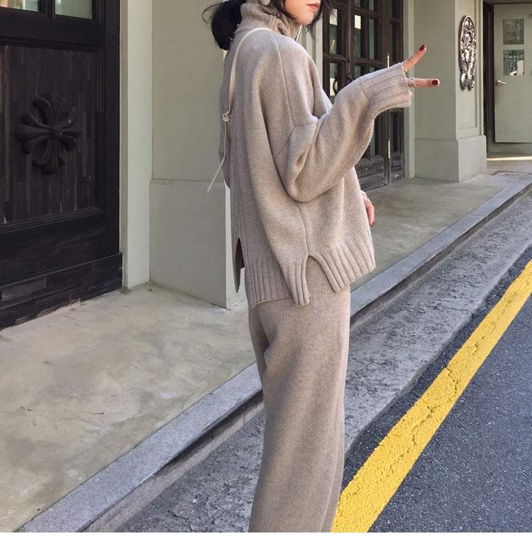 秋冬ニットトラックスーツタートルネックスウェットシャツレディーススーツ服2点セットニットパンツパンツスーツ オータム 秋物 ウィンター 冬物