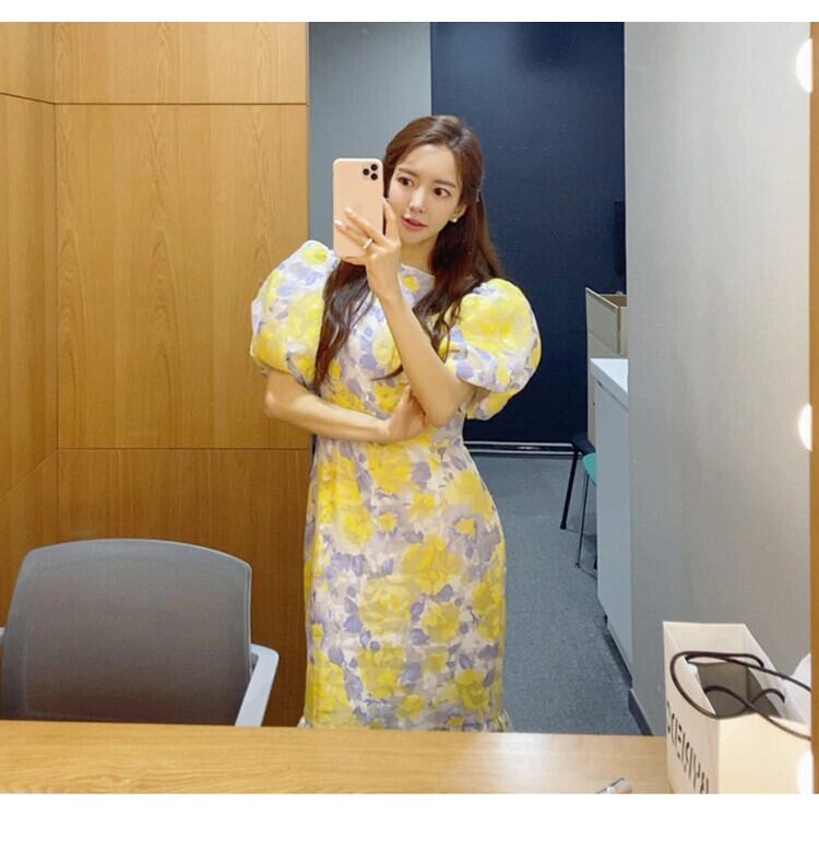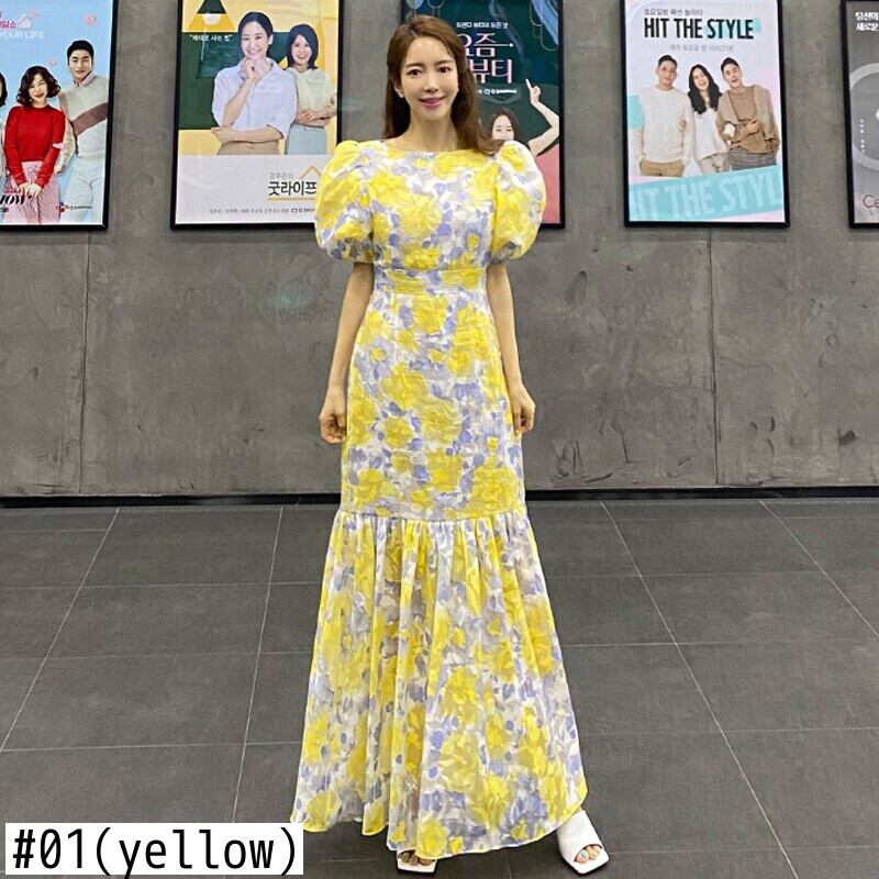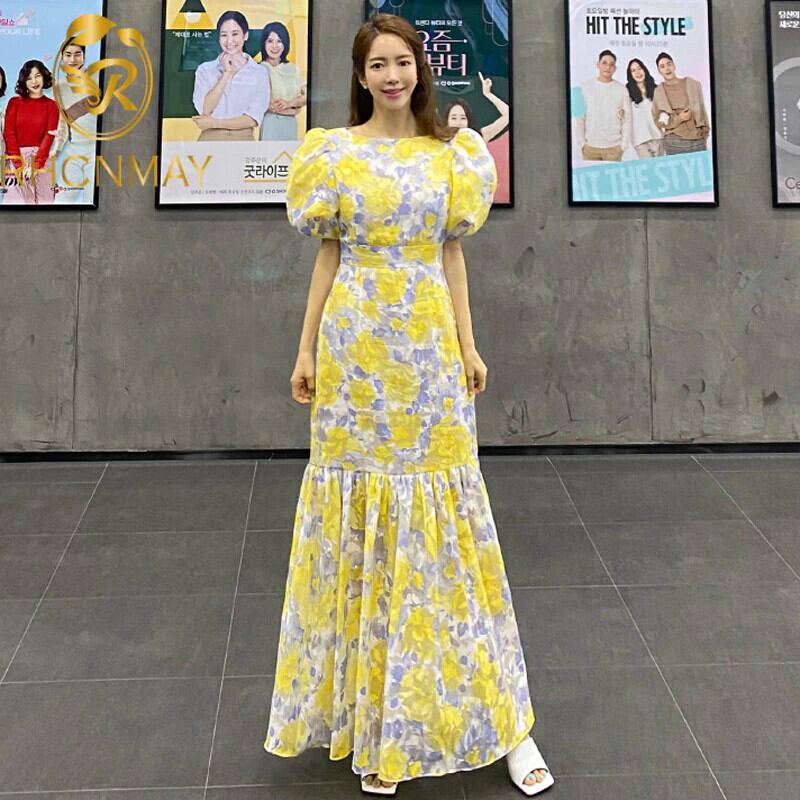 セクシーなOネックAラインマーメイドドレスプリーツスリムウエストランタンスリーブドレス女性ヴィンテージフラワープリントVestidos フラワーデザイン ビンテージ