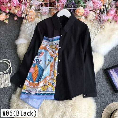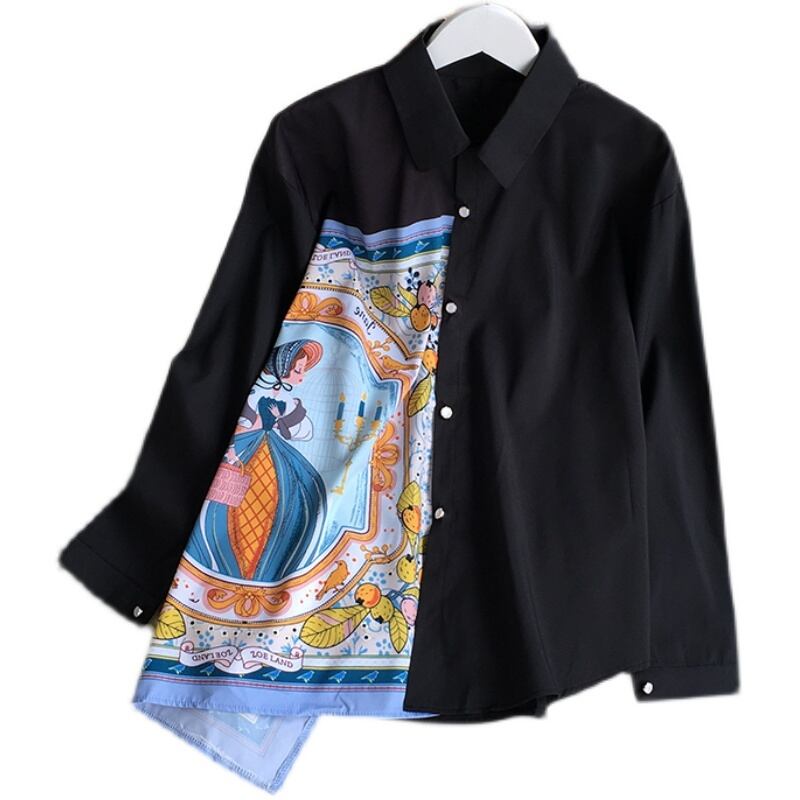 2021年春秋ターンダウンカラー長袖シャツイレギュラーデザインシングルブレストルーズミドル丈シャツトップ ロング スプリング 春物 オータム 秋物