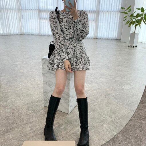 女性のドレスヴィンテージ長袖シックなフリルヒョウプリントウエストドレスルーズVestidos ロング ラッフル ビンテージ