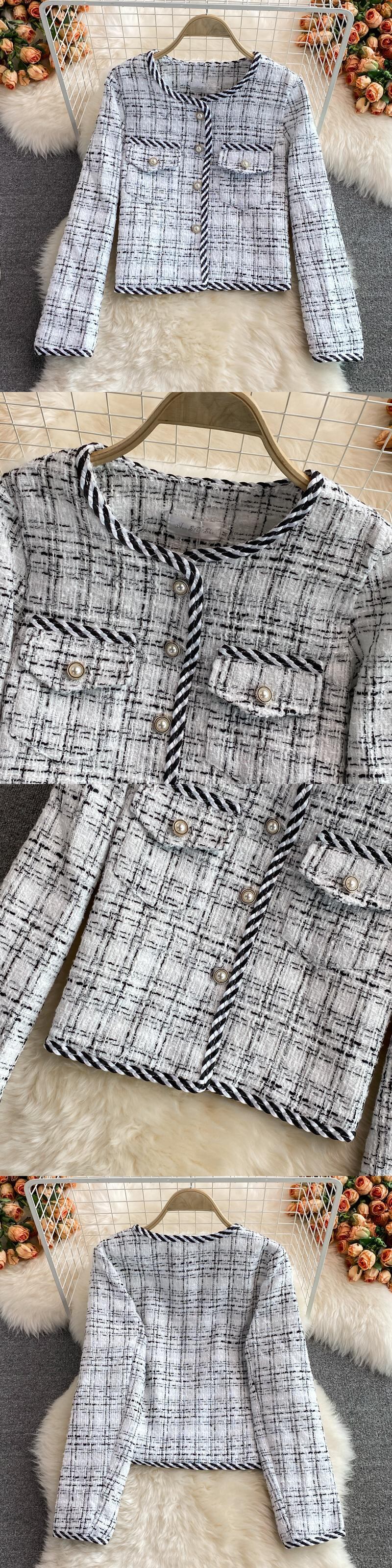 テンペラメントスタイルツイードレディースショートジャケットレディース2021オータムジャケットジャケットウーマントップ 秋物
