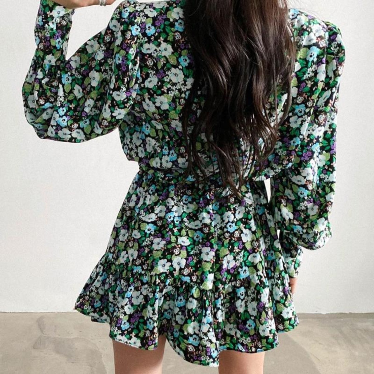 2021年夏の花柄ヴィンテージドレスレディーススタイルセクシーシックなオフィスレディスリム長袖レディースドレスVestidos ロング サマー 夏物 ビンテージ 会社 学校 通勤や通学にも