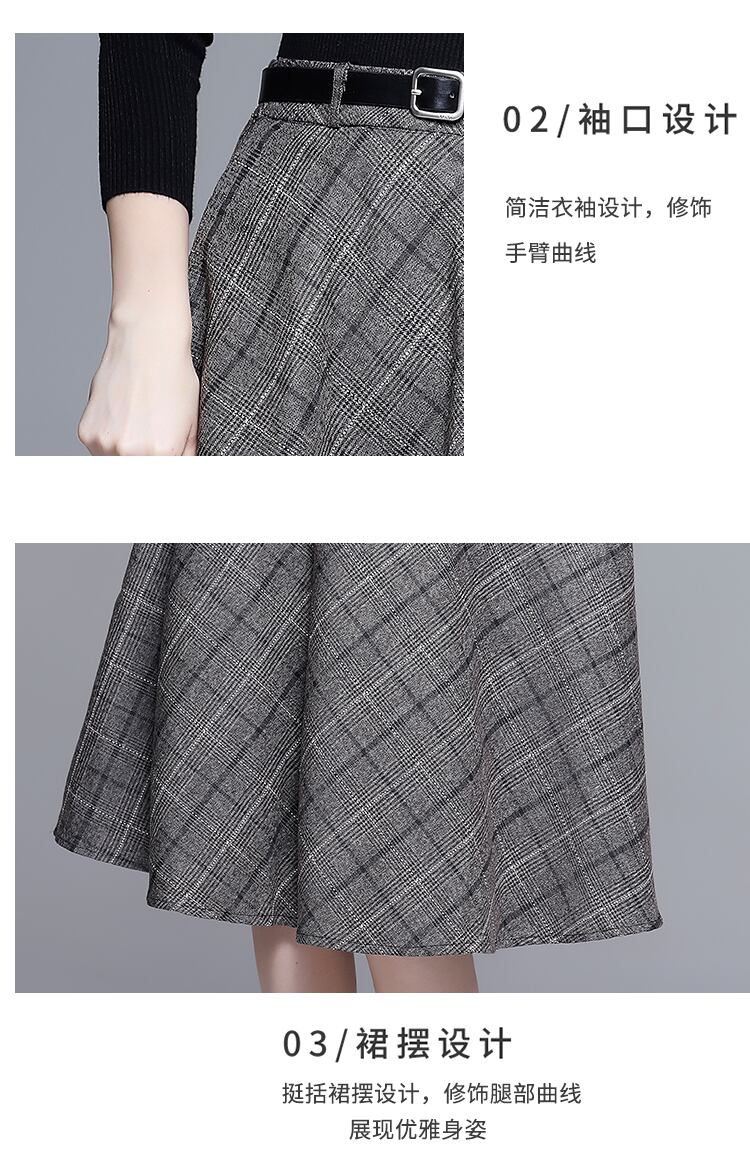 女性用セータートップとチェック柄スカート2点セット ファッション秋冬Oネックニットトップス+チェック柄レディーススカートセット オータム 秋物 ウィンター 冬物
