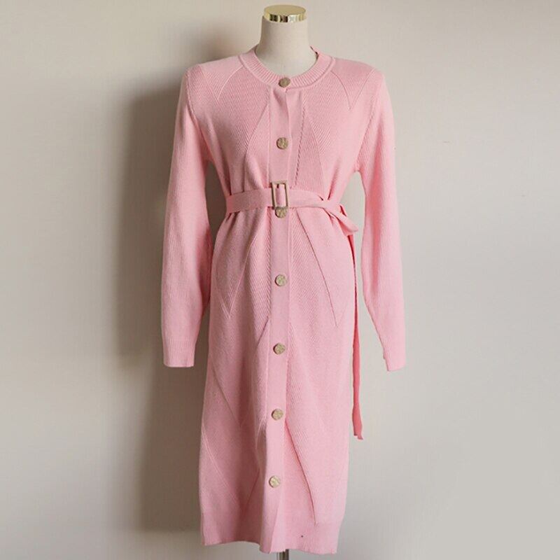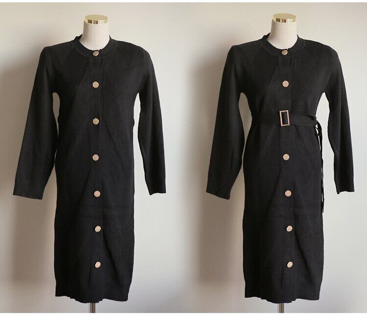 女性ニットカーディガンドレス秋冬ミディアム丈セータードレス無地Oネックシングルブレストフレヌラムドレス オータム 秋物 ウィンター 冬物 ソリッドカラー