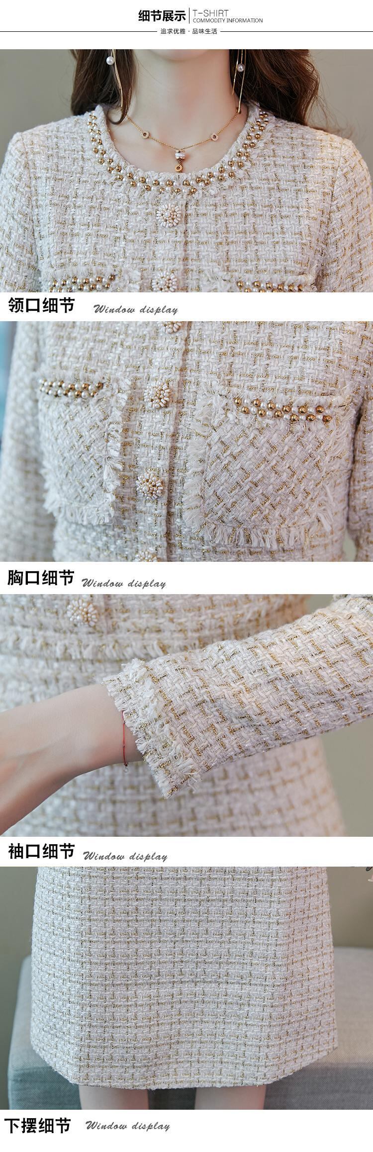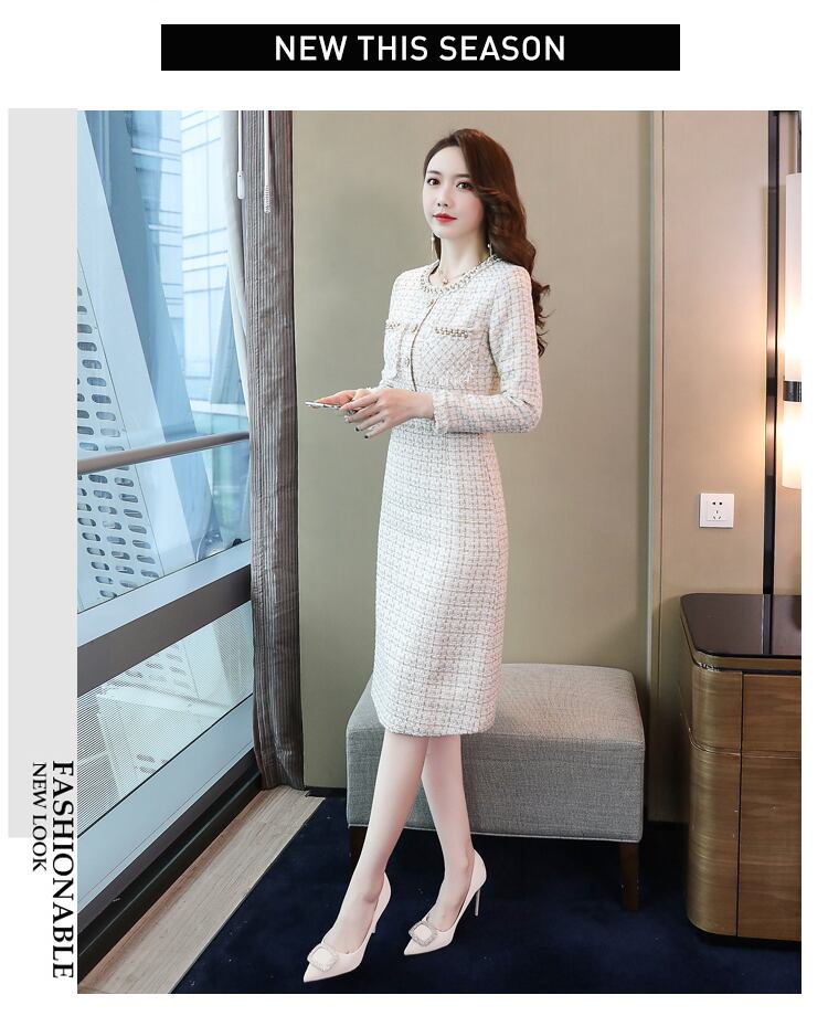 2021年秋のヨーロッパの女性のドレス豪華な手動ビーズラウンドカラー長袖ニットツイードスリムペンシルドレス ロング オータム 秋物 ヨーロピアン
