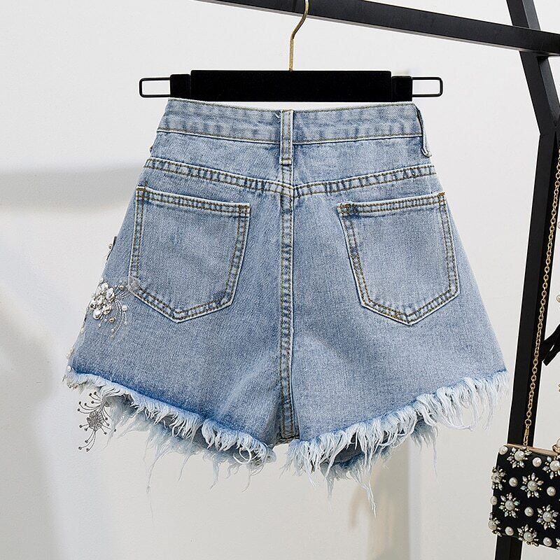夏の女性2点セット刺繡3DフラワーTシャツ+デニムショーツセットヴィンテージビーズショーツセット 刺繍 サマー 夏物 ブルマー フラワーデザイン ビンテージ