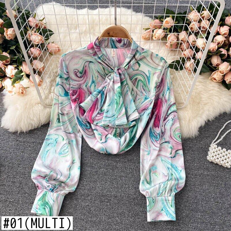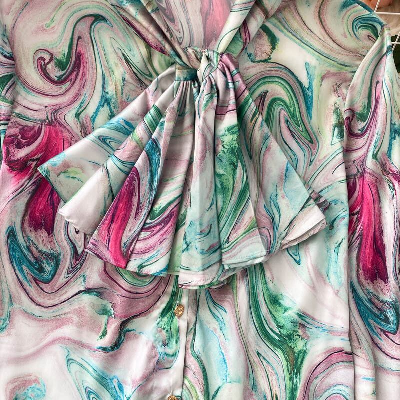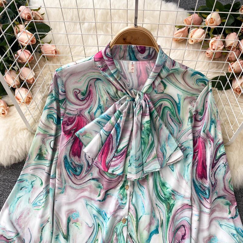 女性プリントブラウスレトロ長袖シングルブレストトップ秋のストリートウェアシフォンブラウス ロング オータム 秋物