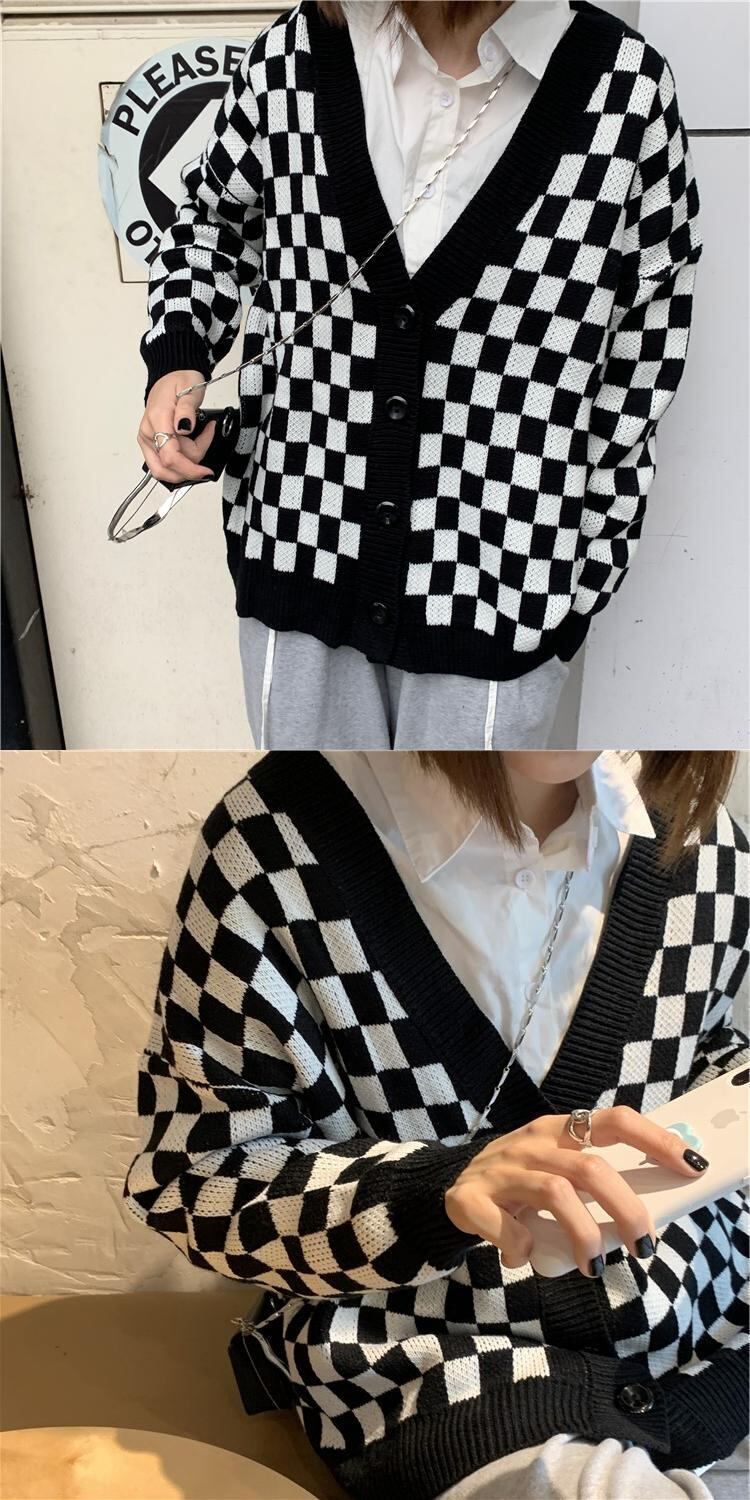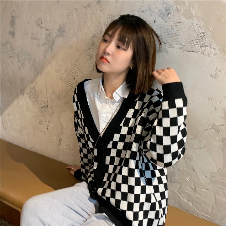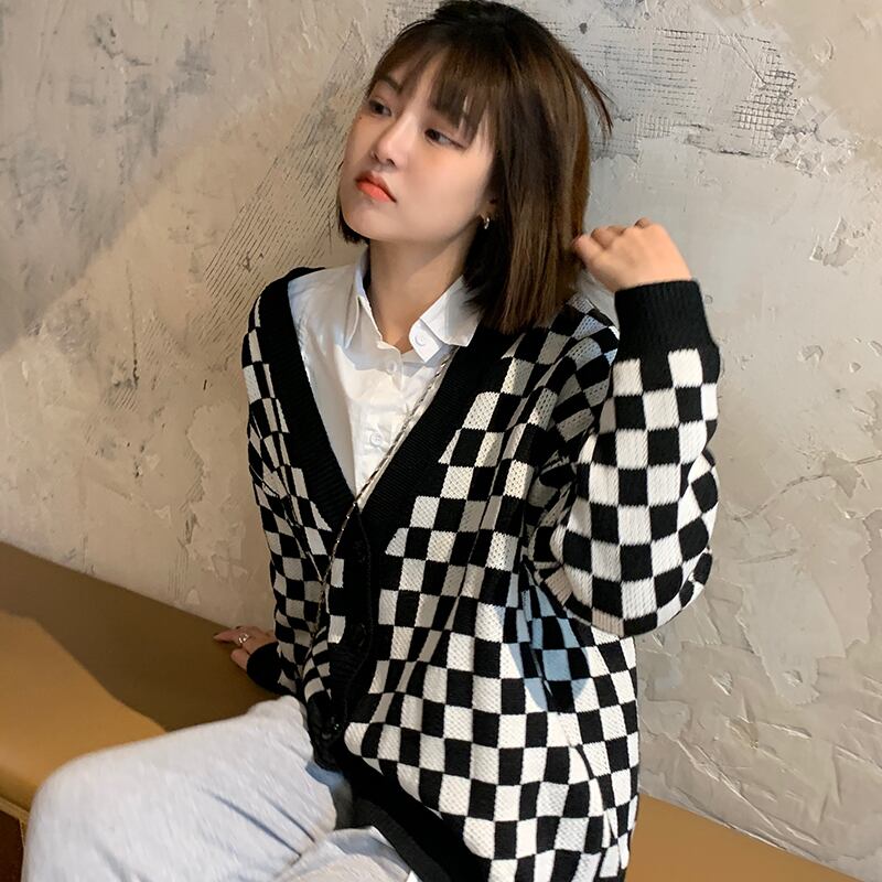 冬の女性のセーターコートスタイルシックなヴィンテージダークラティスパターンルーズレイジーVネック長袖カーディガン ロング ウィンター 冬物 ビンテージ