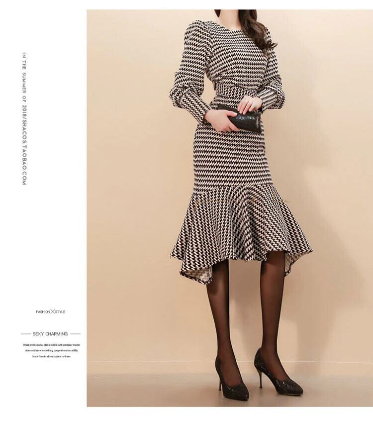 春の女性ウェーブストライプオフィスワークスーツO-nevkブラウストップスとボディコンミッドカーフマーメイドスカートツーピースセット スプリング 春物 会社 学校 通勤や通学にも