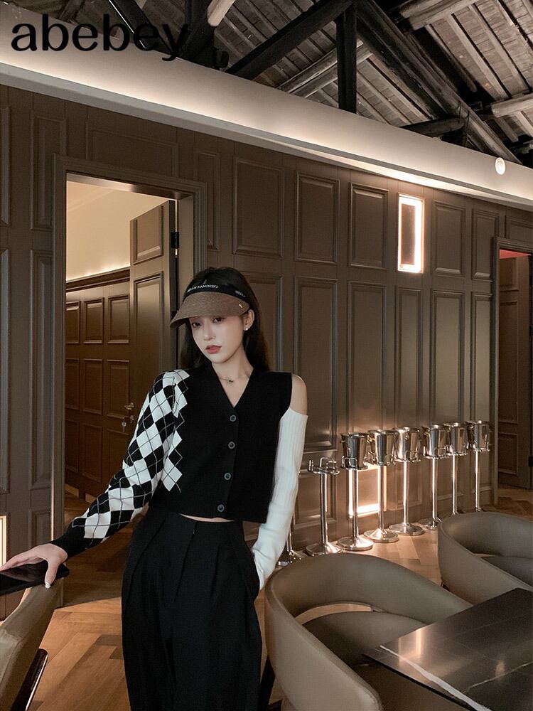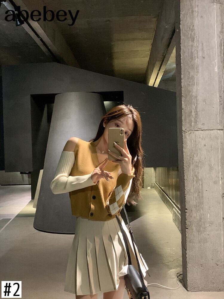 ストライプカーディガンレディースVネック長袖2021秋スリムニットセーターレター刺繡オールマッチ ロング 刺繍 オータム 秋物