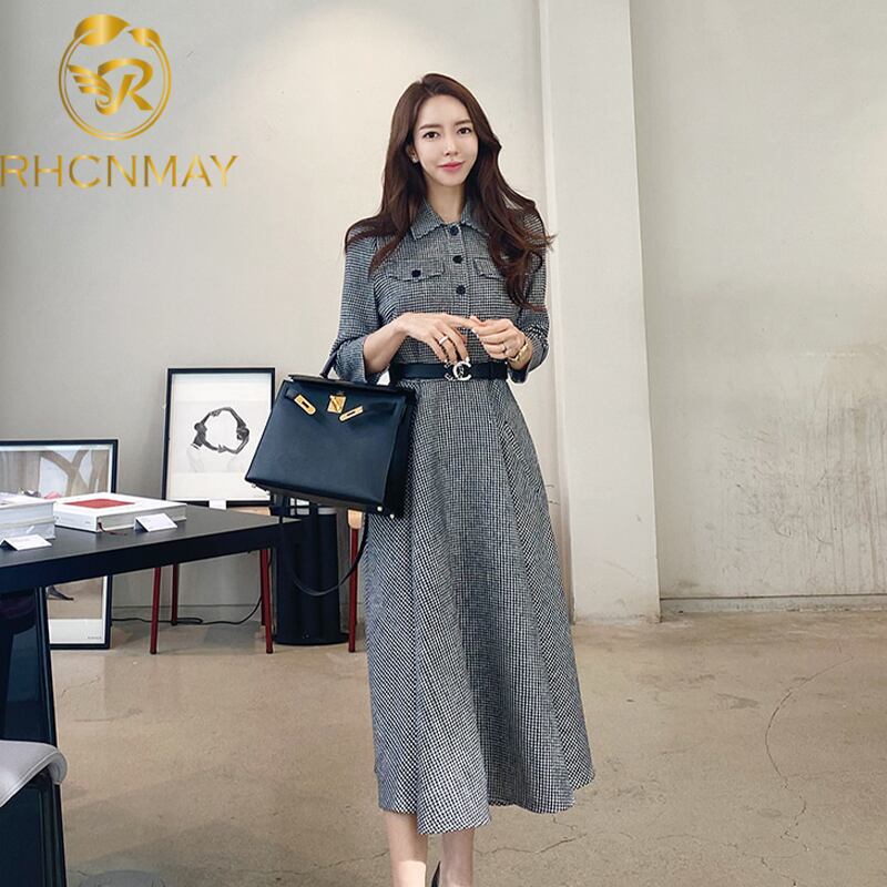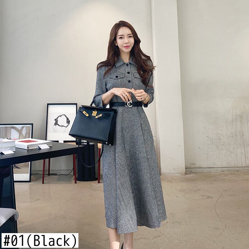 Winter TemperamentGraceシングルブレストガードウエストスリムラティスドレスラペルペンシルドレス ウィンター 冬物