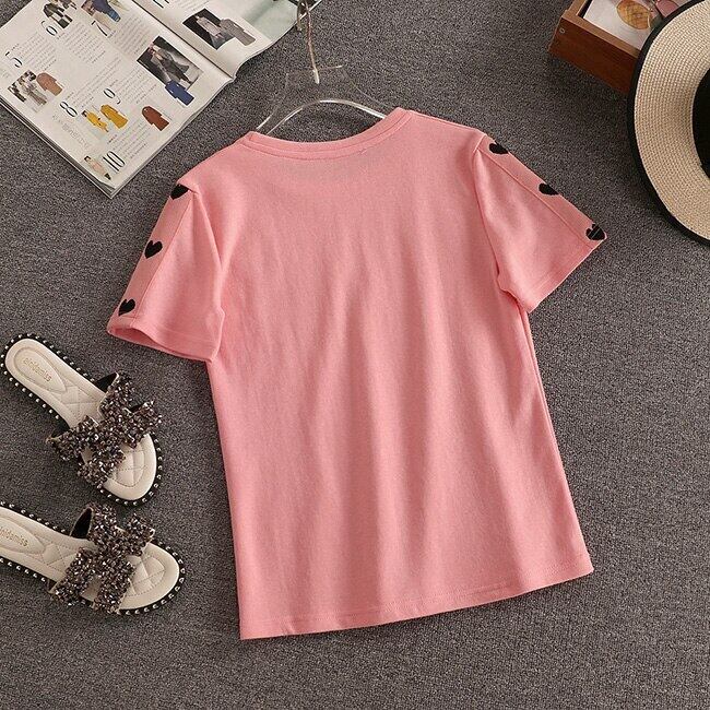 サマーラブスパンコール半袖Tシャツ+ロングパンツ2ピースパンツランニング2ピーススーツスポーツスーツ ショート ハーフスリーブ 夏物