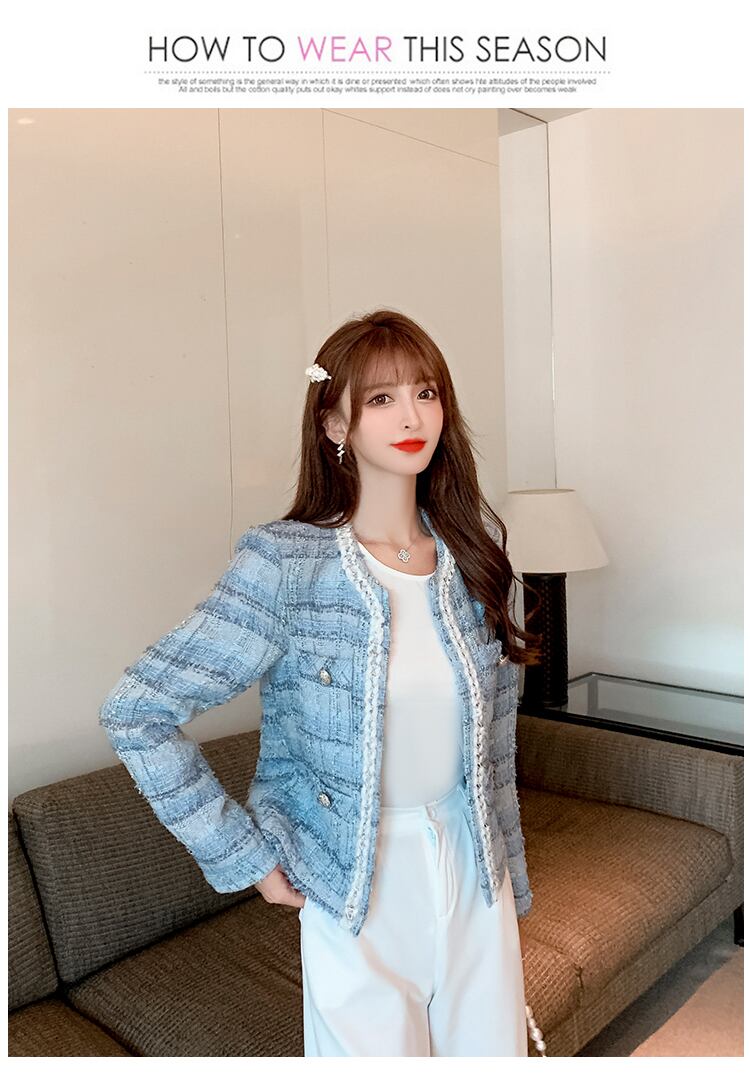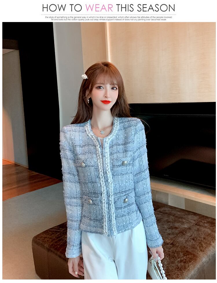 女性ツイードジャケット2021オフィススーツコート秋のヴィンテージチェック柄ニットコートガールズシック オータム 秋物 ビンテージ 会社 学校 通勤や通学にも