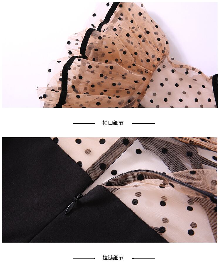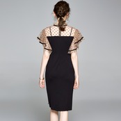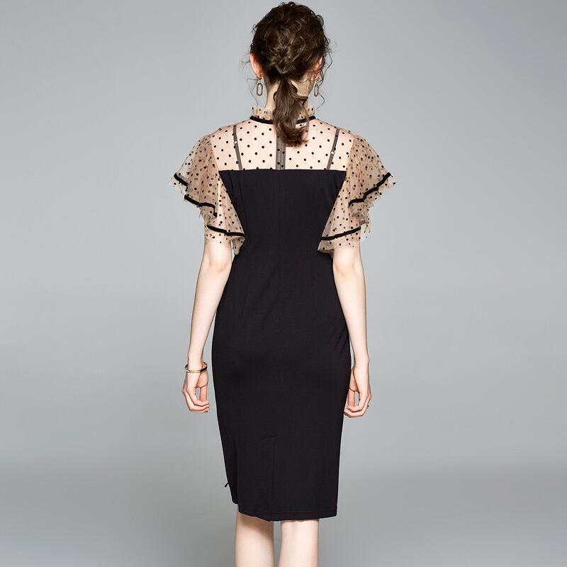 ランウェイサマーペンシルドレスレディースメッシュウェーブポイントパッチワークブラックスタンドカラーボディコンドレス 夏物