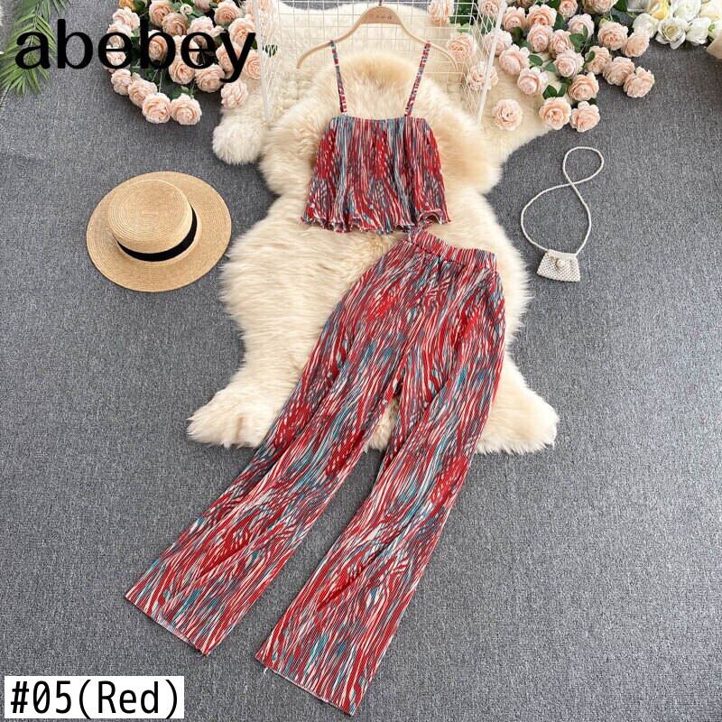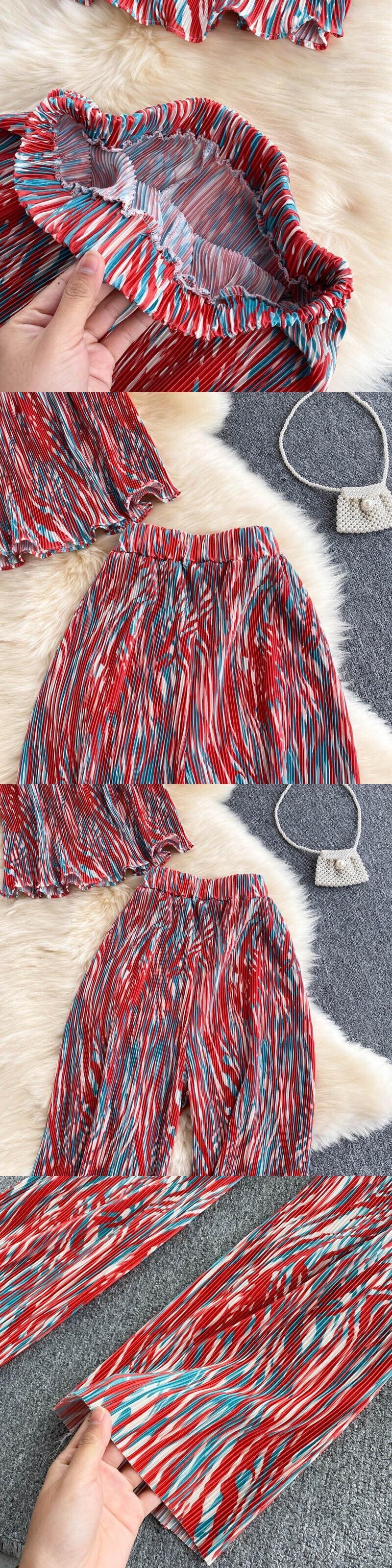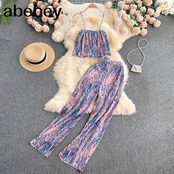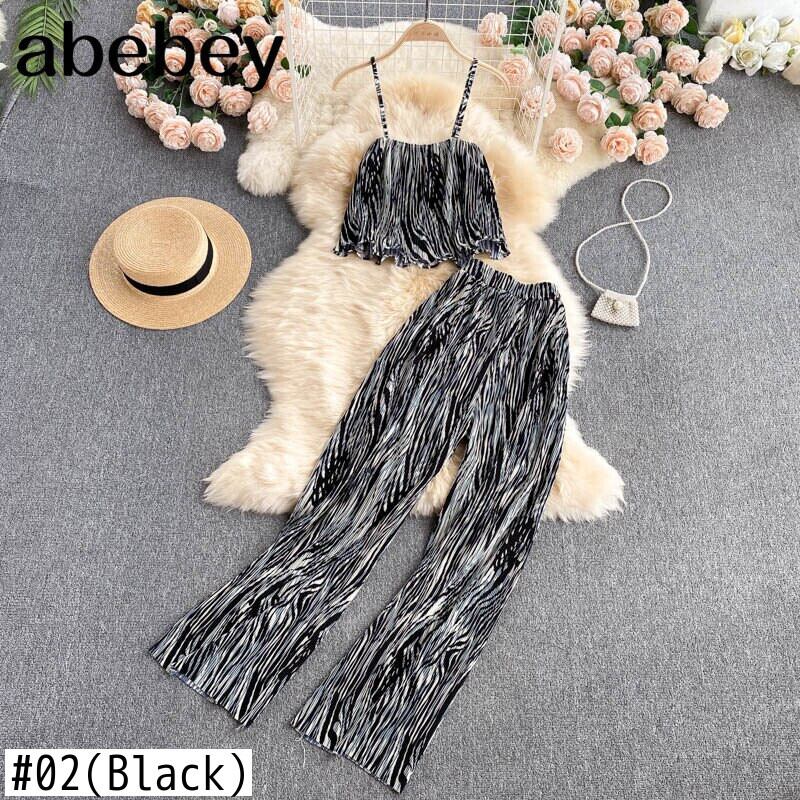 女性のストリートウェアセットセクシーなショートストラップノースリーブトップス+ウエストワイドレッグロングパンツツーピース衣装 ワイドパンツ