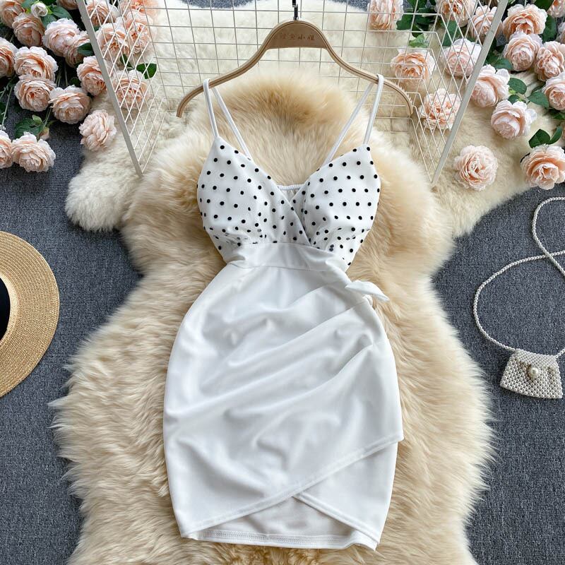 女性ドットストラップドレスセクシーなノースリーブVネック不規則なスリムドレス夏のセクシーなオフショルダーストリートウェアサンドレス サマー 夏物