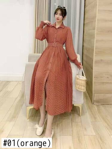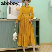 2021年春オールマッチターンダウンカラー長袖ワンピースウエストスリムシングルブレストワンピース ロング スプリング 春物