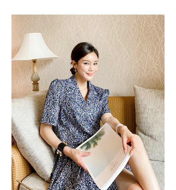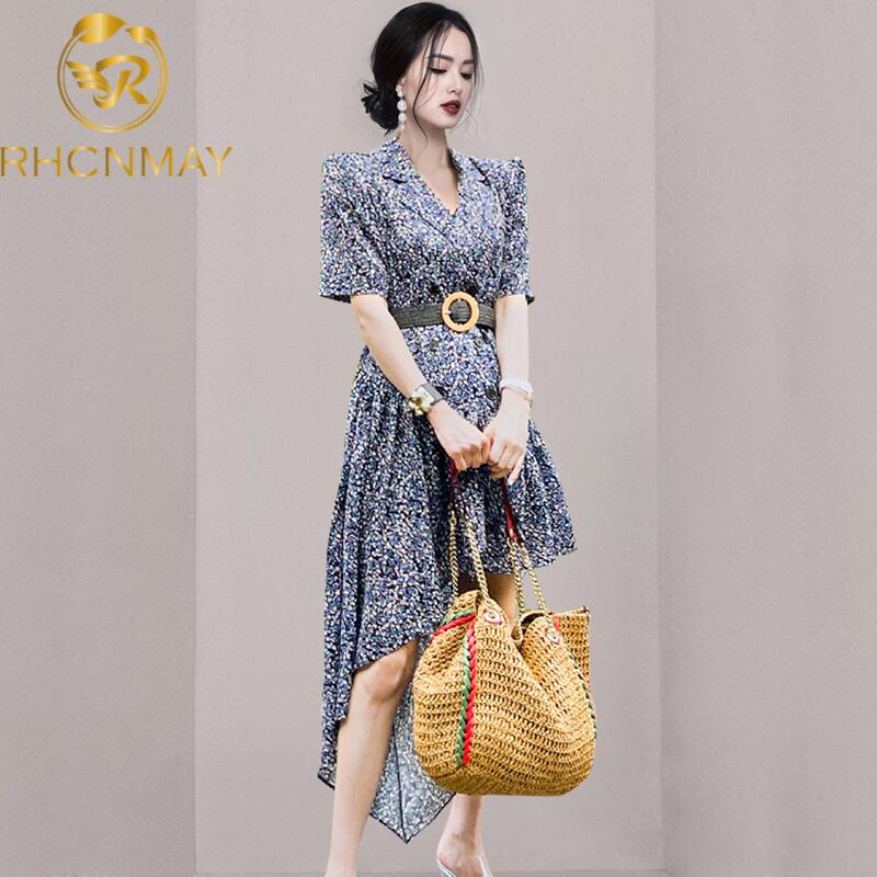 2021年夏の女性不規則なミニドレスノッチ付きヴィンテージプリントシフォンシックなドレスベルト付きフェミニンなパーティードレス サマー 夏物 ハーネス ビンテージ