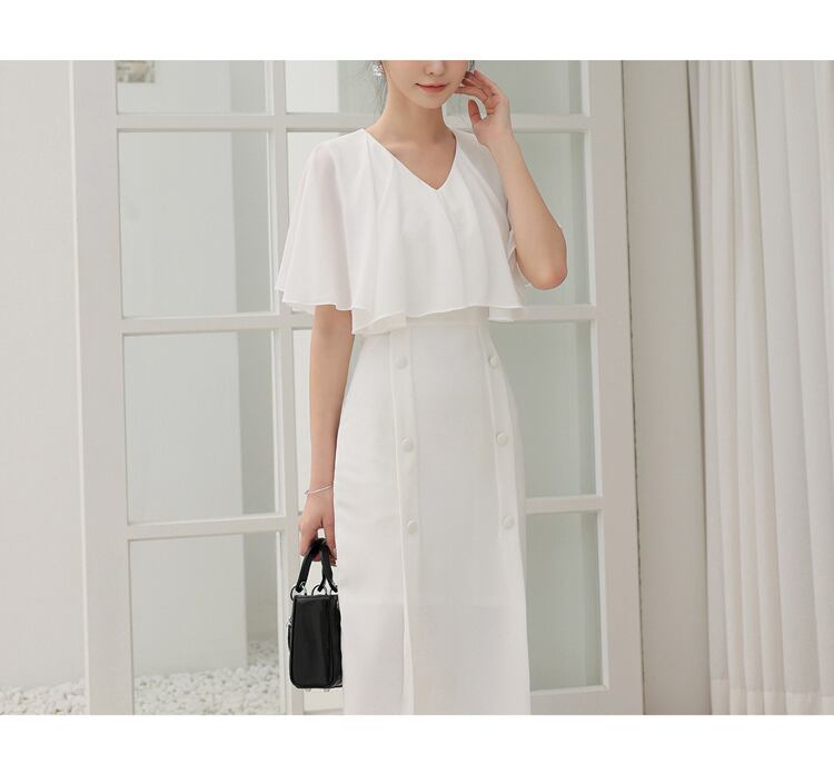レディースホワイトドレスレディースVネックバタフライスリーブウエスト気質ドレスs2021年夏スタイル サマー 夏物