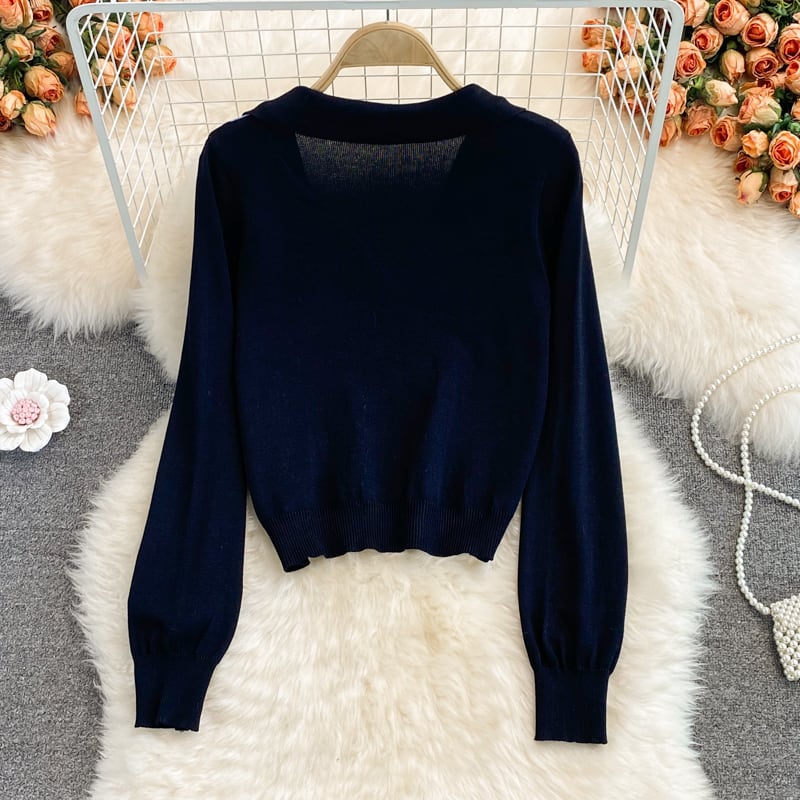 STINGRAYレトロアーガイルチェック柄ニットプルオーバーレディースターンダウン-襟長袖ニットトップスオータムスタイルセーター ロング 秋物