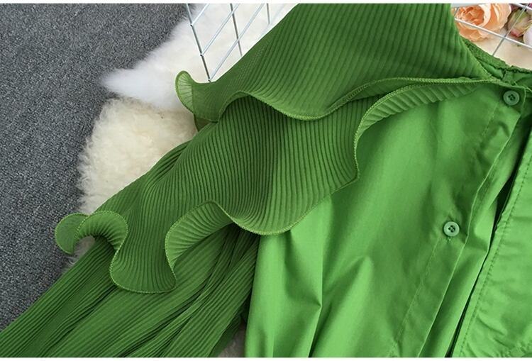 2021年春秋大ターンダウンカラー長袖シャツフリルパッチワーク非対称デザインミドル丈シャツトップ ロング ラッフル スプリング 春物 オータム 秋物