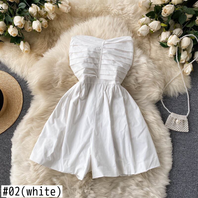 女性ストラップレスロンパースセクシーなノースリーブ弾性シャーリングジャンプスーツサマーオフショルダーワイドレッグプレイスーツ エラスティック 伸縮 夏物 ワイドパンツ