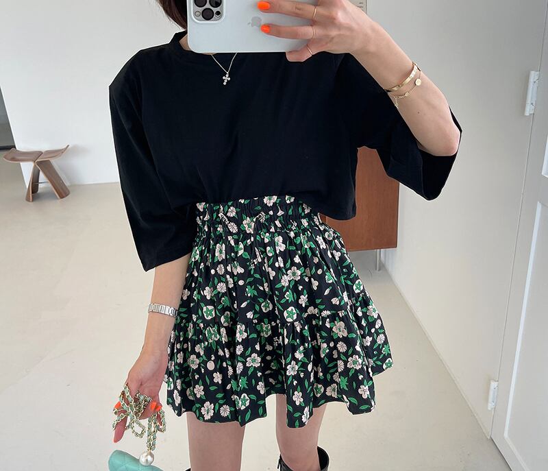 プリーツサマースカートレディースエラスティックウエストフリルセクシープリントビーチショートミニレディーススカート 伸縮 夏物