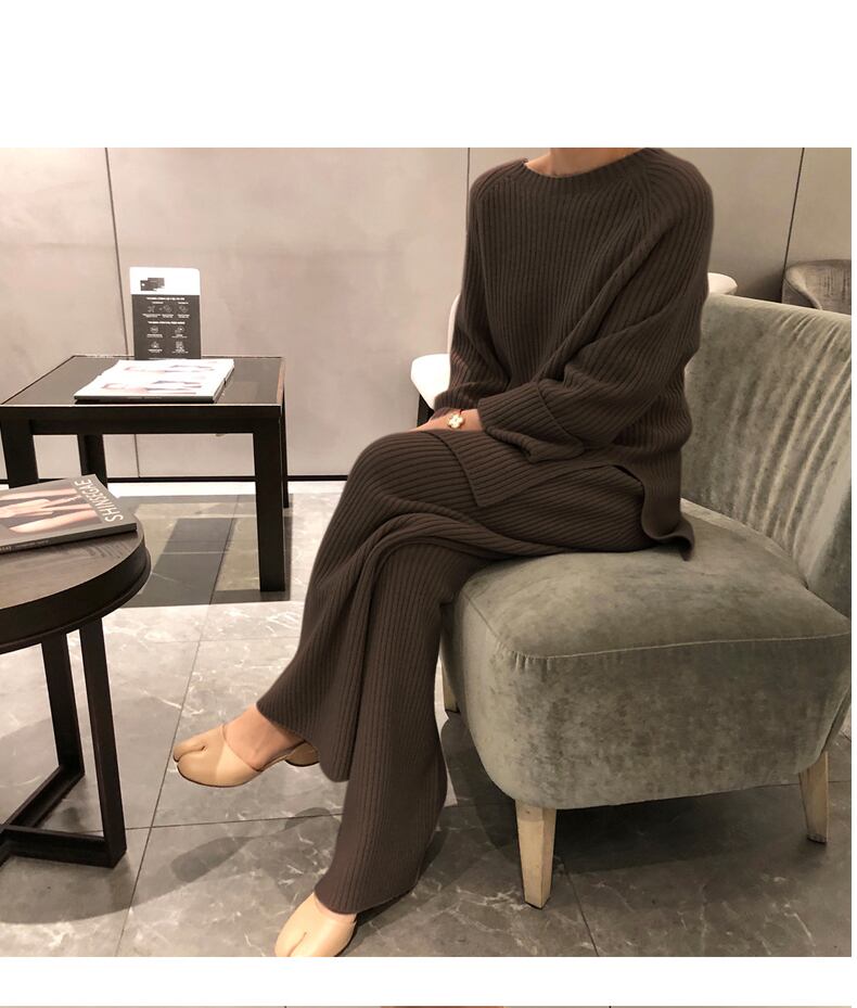 レディースニットスーツ冬用ニットパンツセットルーズシックセーターワイドレッグパンツパンツツーピースセット ウィンター 冬物 ワイドパンツ