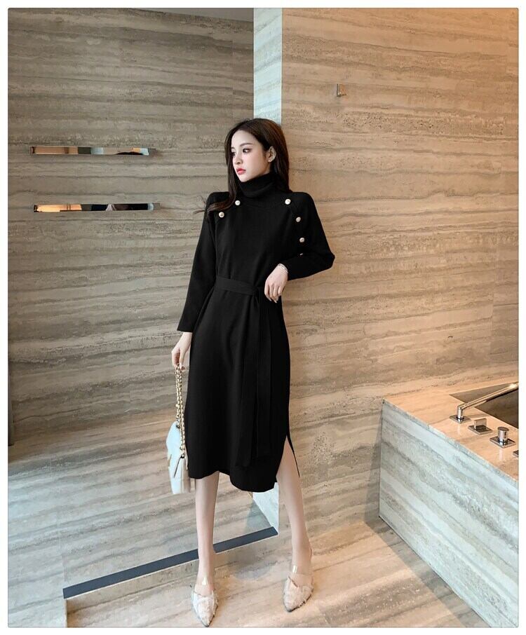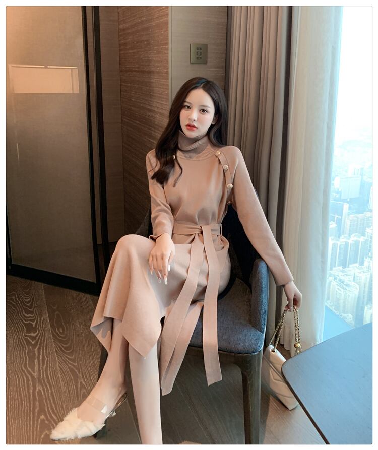 女性のセータードレス2021秋冬フレンチレトロロングオーバーニーセータータートルネックニットロングドレス オータム 秋物 ウィンター 冬物