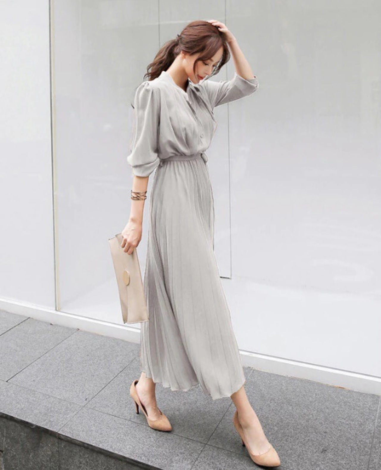 夏プリーツセクシーボディコンロングドレス女性ヴィンテージシフォン長袖パーティードレスVestidos女性弓ベルト リボン サマー 夏物 ハーネス ビンテージ