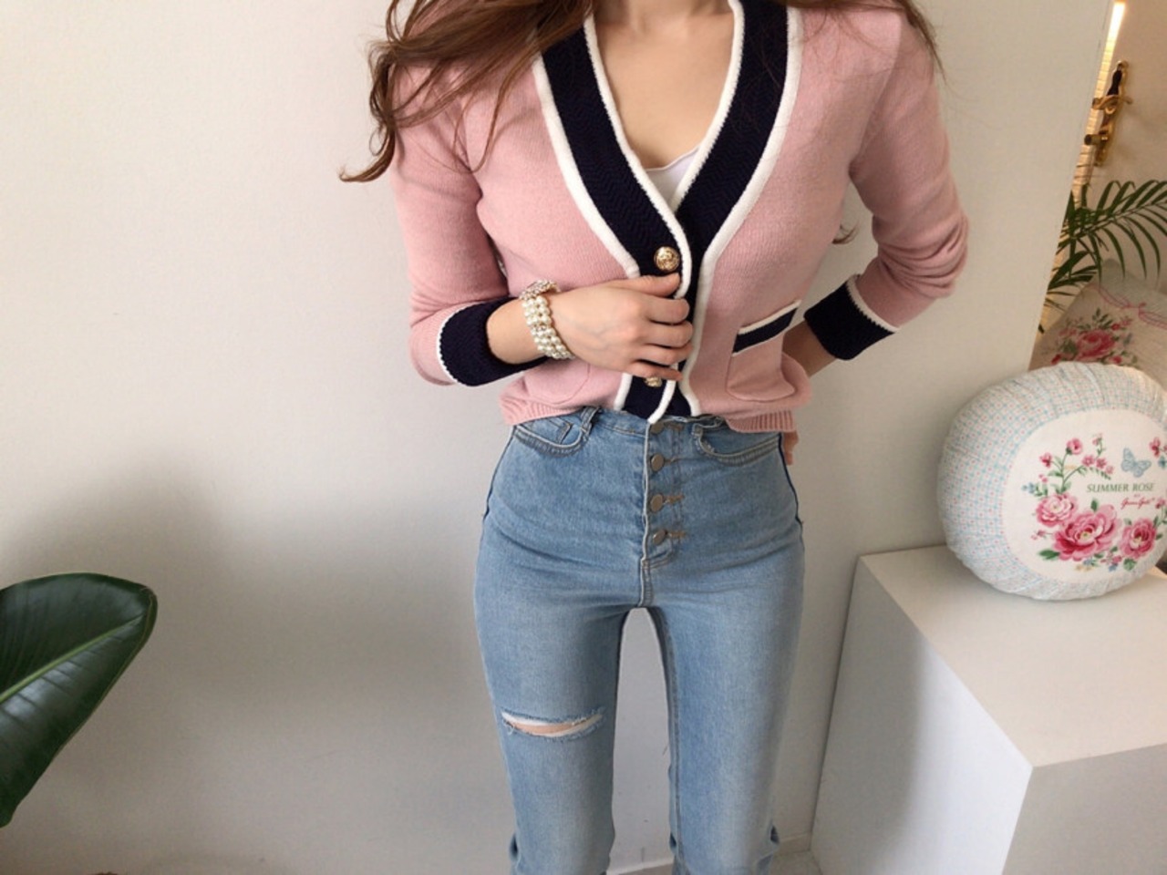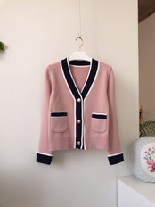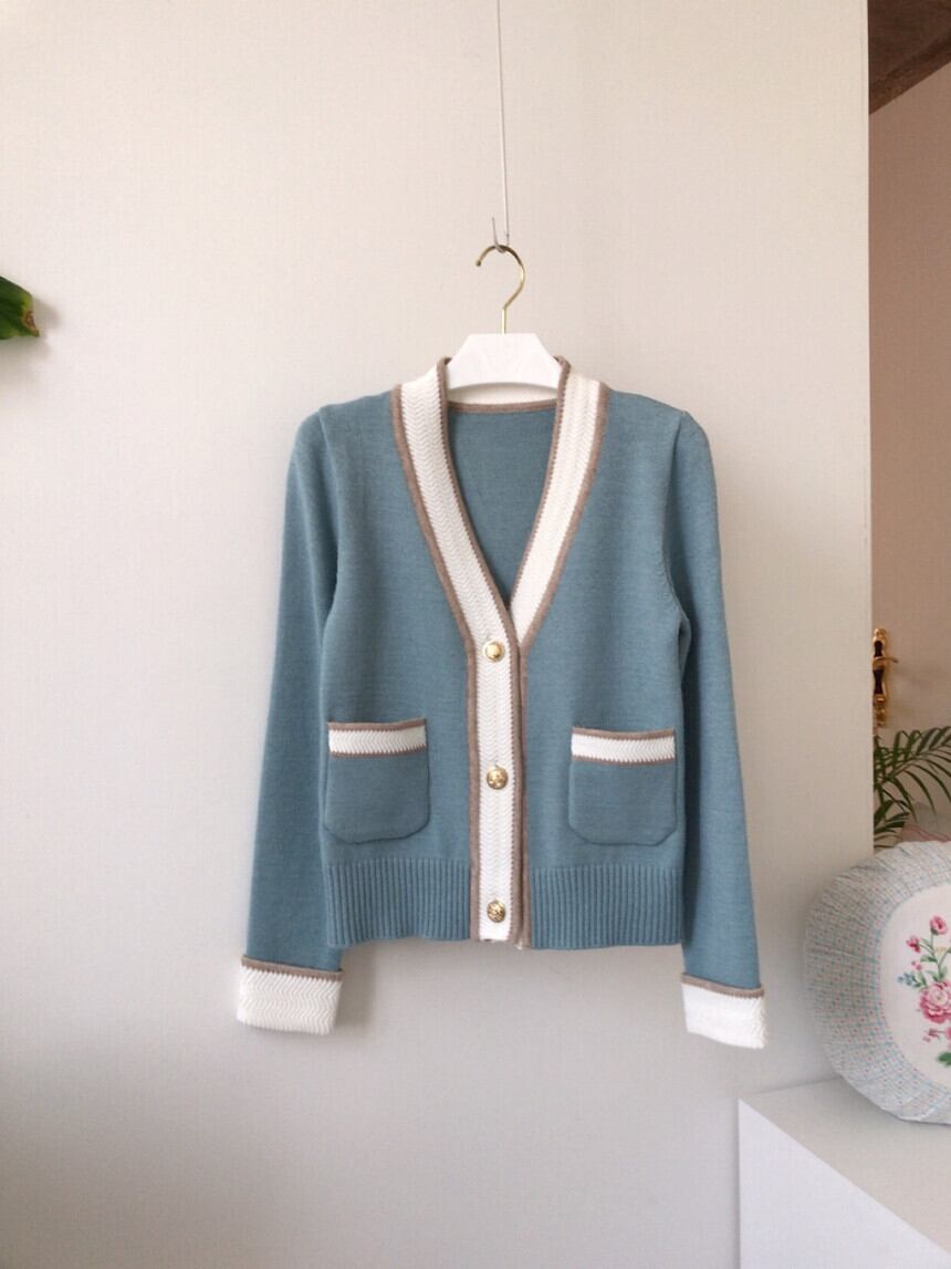 トレンドニットカーディガンカラーコントラストセーターレディース長袖Vネックスリムトップスカーディガン 秋冬 ロング オータム 秋物 ウィンター 冬物