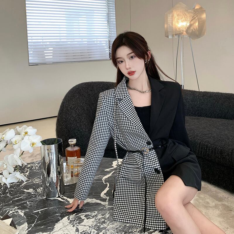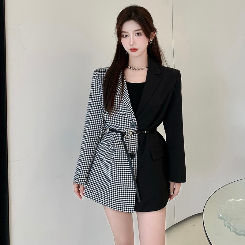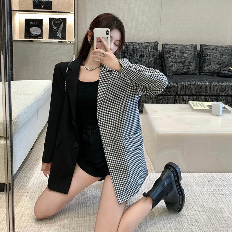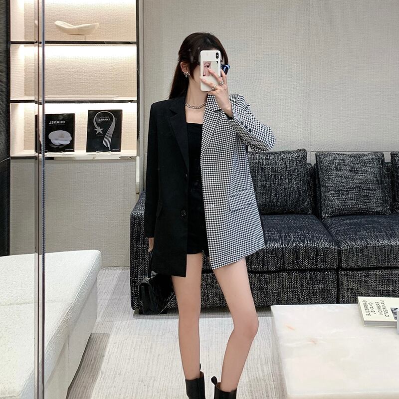女性パッチワークブレザースーツコート2021秋フルスリーブノッチ付きカラーシングルブレストジャケットスーツトップス オータム 秋物