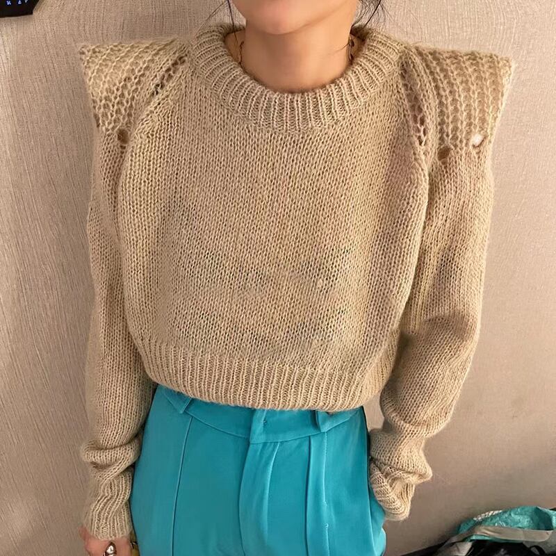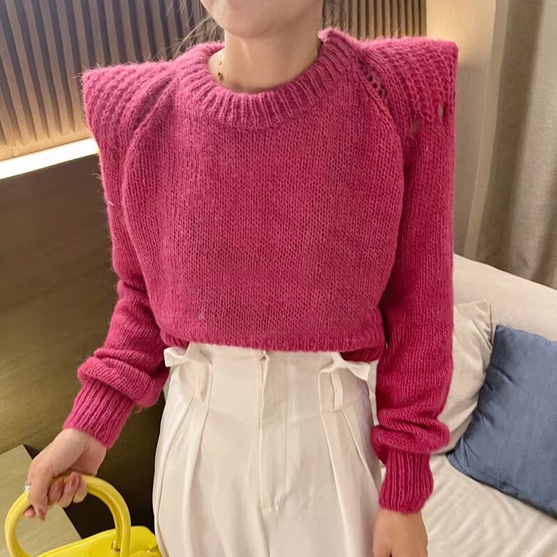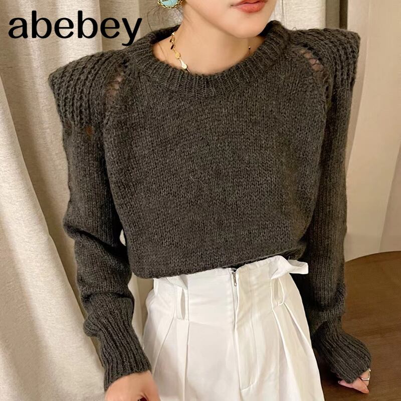 長袖トップスプルオーバー女性ラウンドカラーミニマリストソリッドセーター2021秋 ロング オータム 秋物 ソリッドカラー