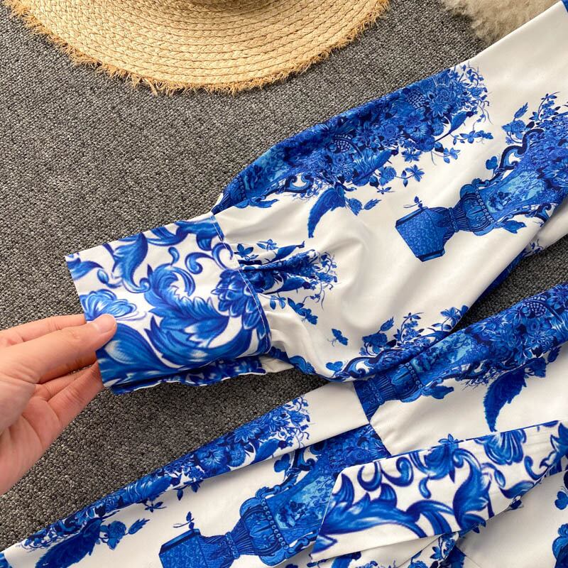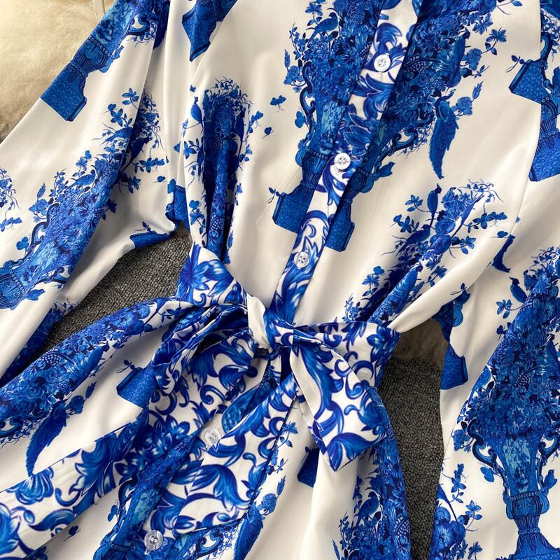 女性コートウィンドプリントドレスレトロスタンドカラーパフスリーブボタンドレス秋のAラインストリートウェアショートドレス オータム 秋物