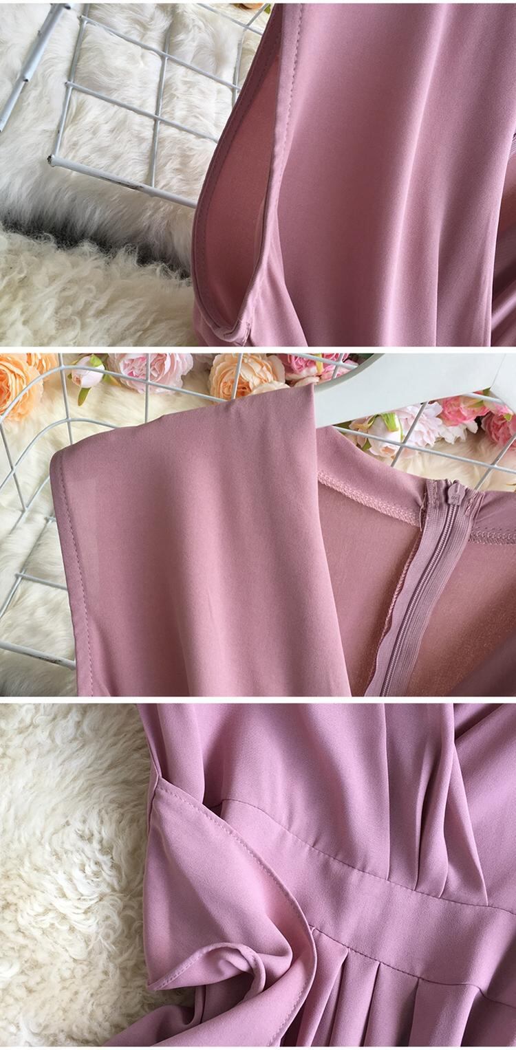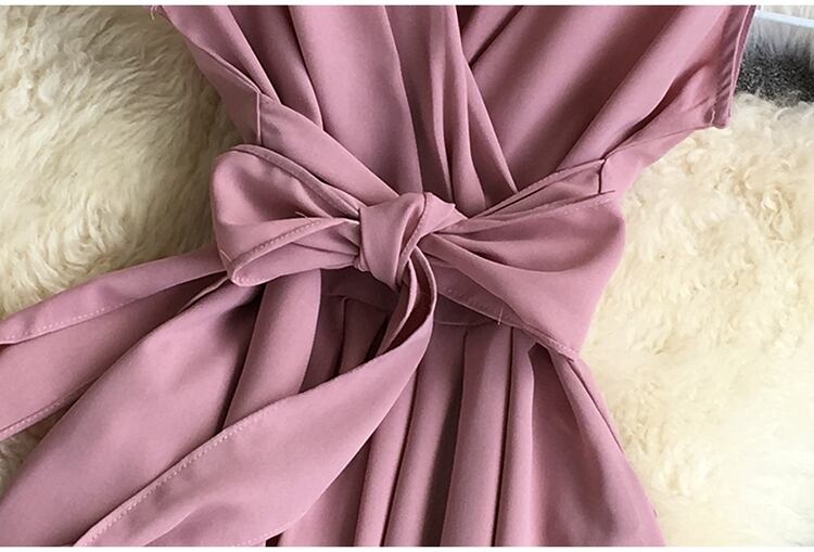 2021年夏の女性Vネックノースリーブオフショルダードレスハイウエストプリーツレースアップウエストミドル丈Aラインドレス ハイウェスト サマー 夏物