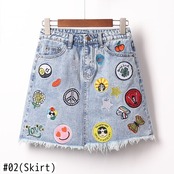 ラージサイズ刺繡エポレット デニムジャケットコート+ミニジャンスカート 衣装レディーススーツオフィスツーピースセットS-5XL 刺繍 大きめサイズ 会社 学校 通勤や通学にも