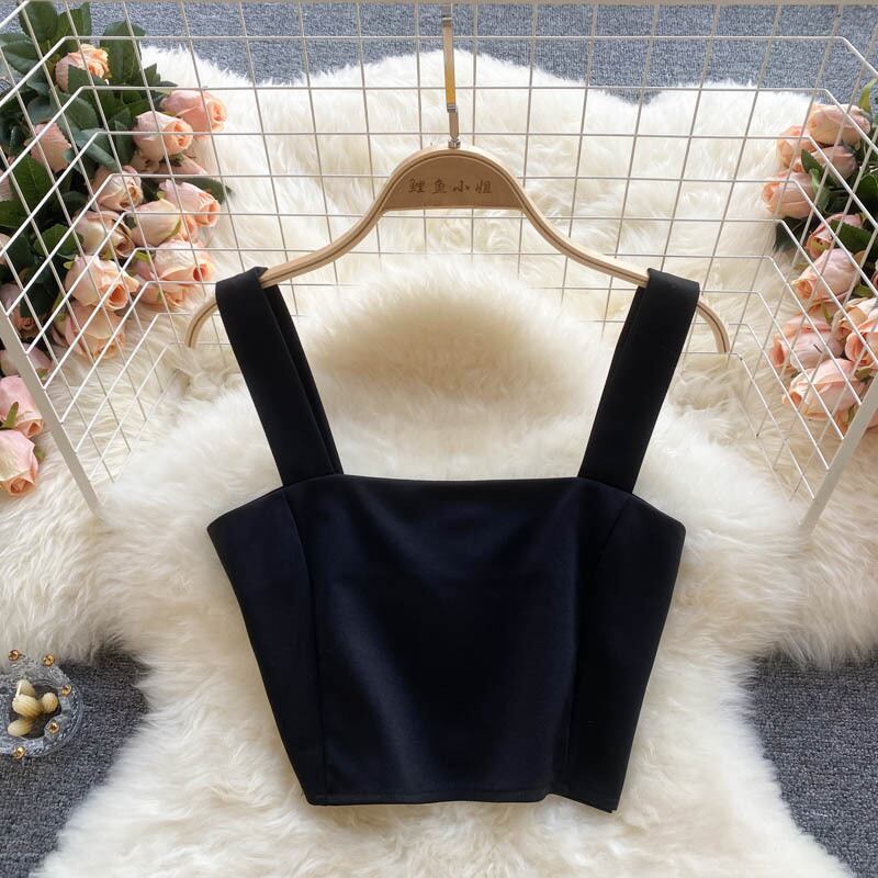 女性ストラップクロップトップセクシーなノースリーブスリムY2Kトップス2021サマーオフショルダーストリートウェアショートキャミソール 夏物
