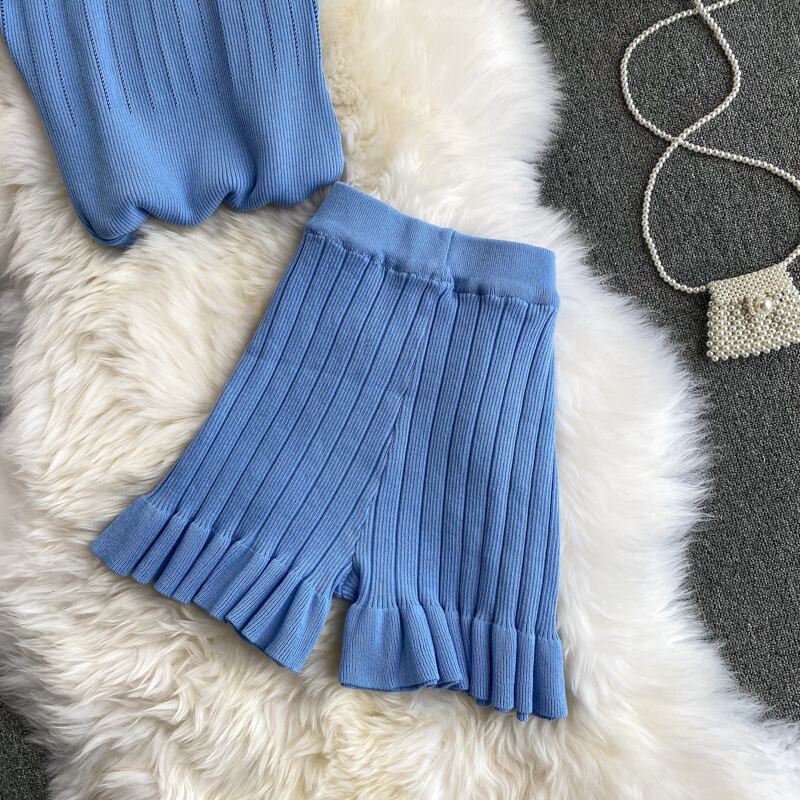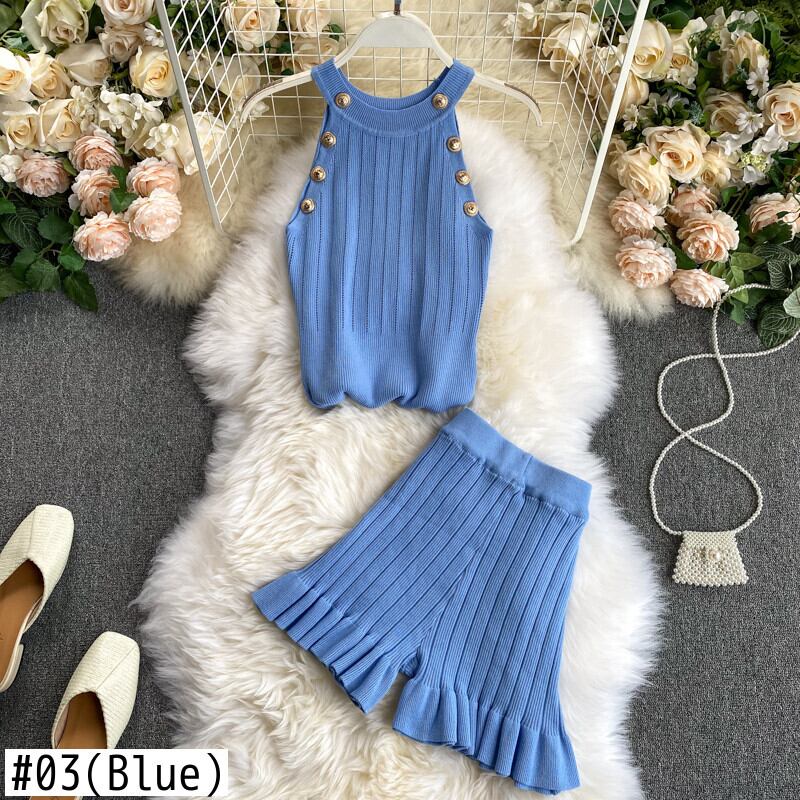 2021年夏のニットトップス+ショーツレディースラウンジウェアセット人気のボタンタンクトップショートウェアセットレディース2点セット サマー 夏物 ブルマー