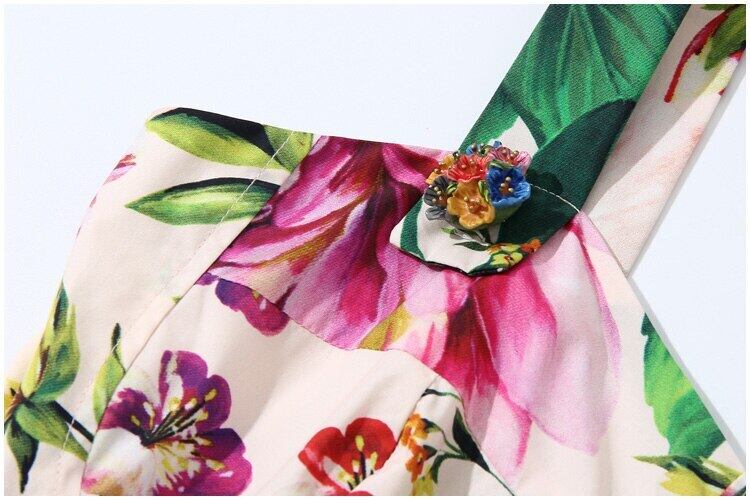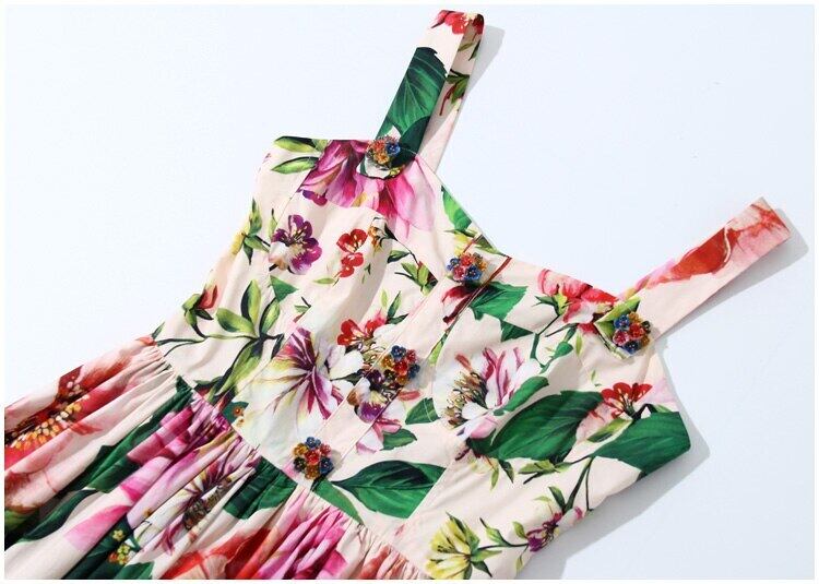 滑走路サマードレス女性スパゲッティストラップセクシードレスクリスタルボタンピンクフローラルプリントミニドレス 夏物 花柄
