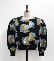 ショートジャケット女性高級アップリケ花レトロスタイルランタンスリーブウールジャケットアウターコート フラワーデザイン