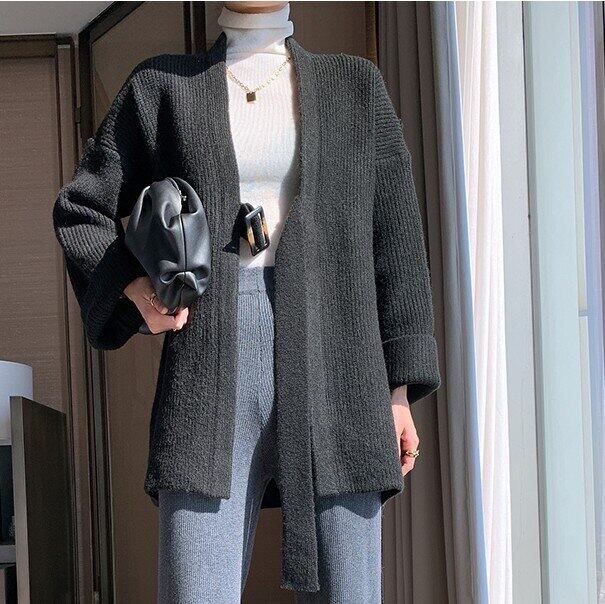 シックな秋冬のセーターコート2021シックな女性のニット厚手のレースアップ長袖ルーズカーディガンコート ロング オータム 秋物 ウィンター 冬物