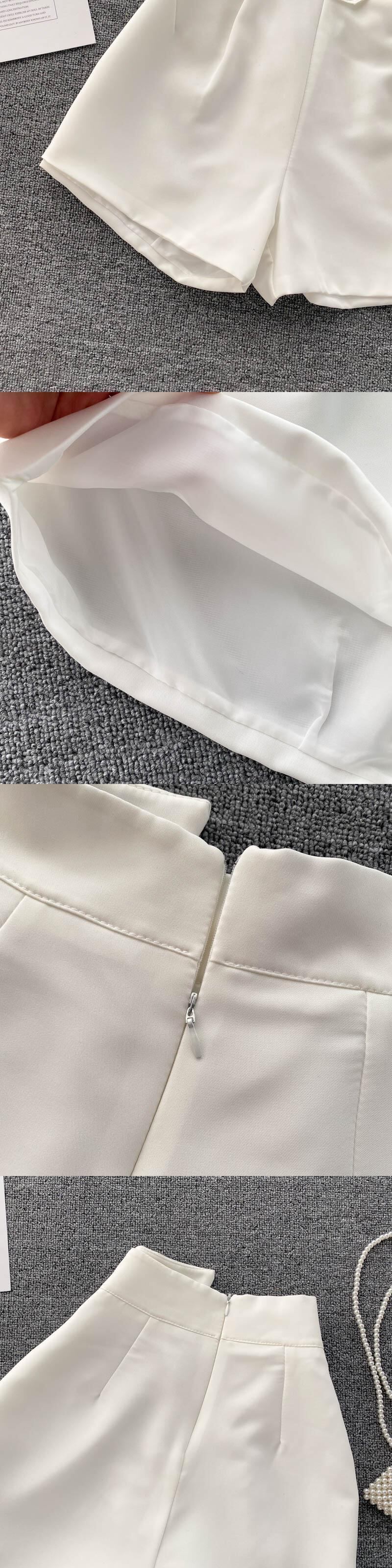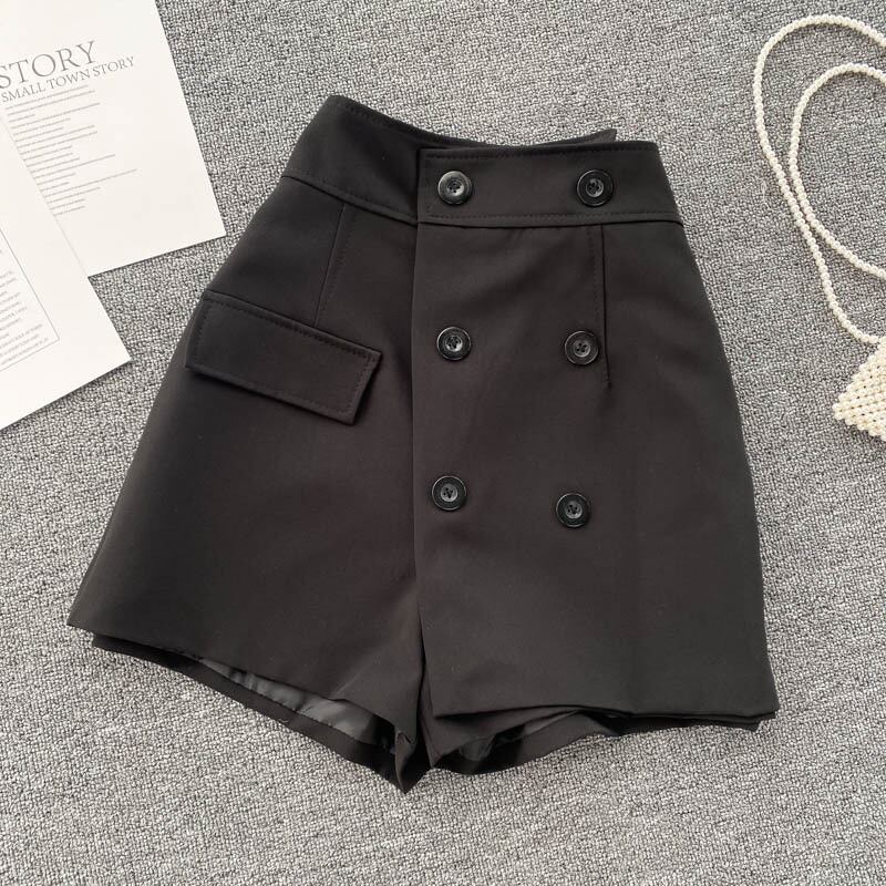 2021年春の女性ダブルブレストウエストAラインワイドレッグブラックショーツ スプリング 春物 ブルマー ワイドパンツ