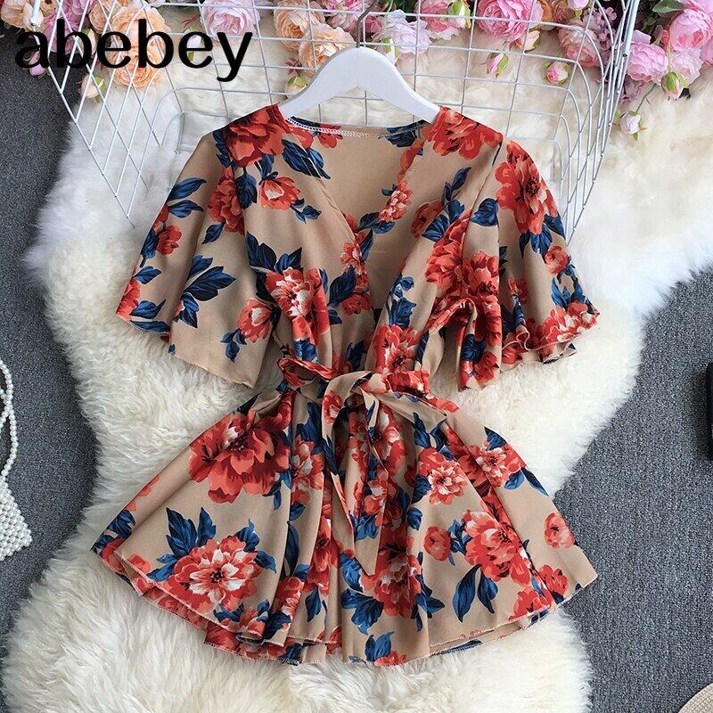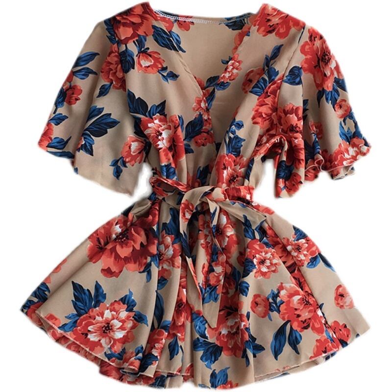 2021年夏の女性スウィート多目的Vネック半袖シャツハイウエストプリーツレースアップウエストプリントショートシャツトップ ハイウェスト ハーフスリーブ 大人ガーリー キュート カジュアル サマー 夏物