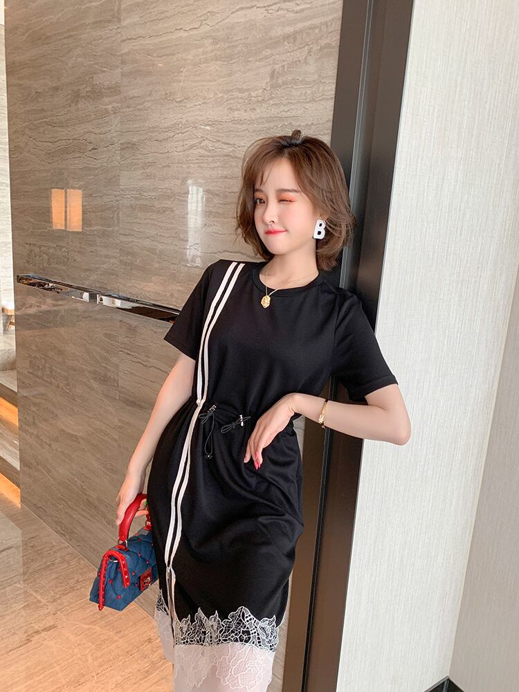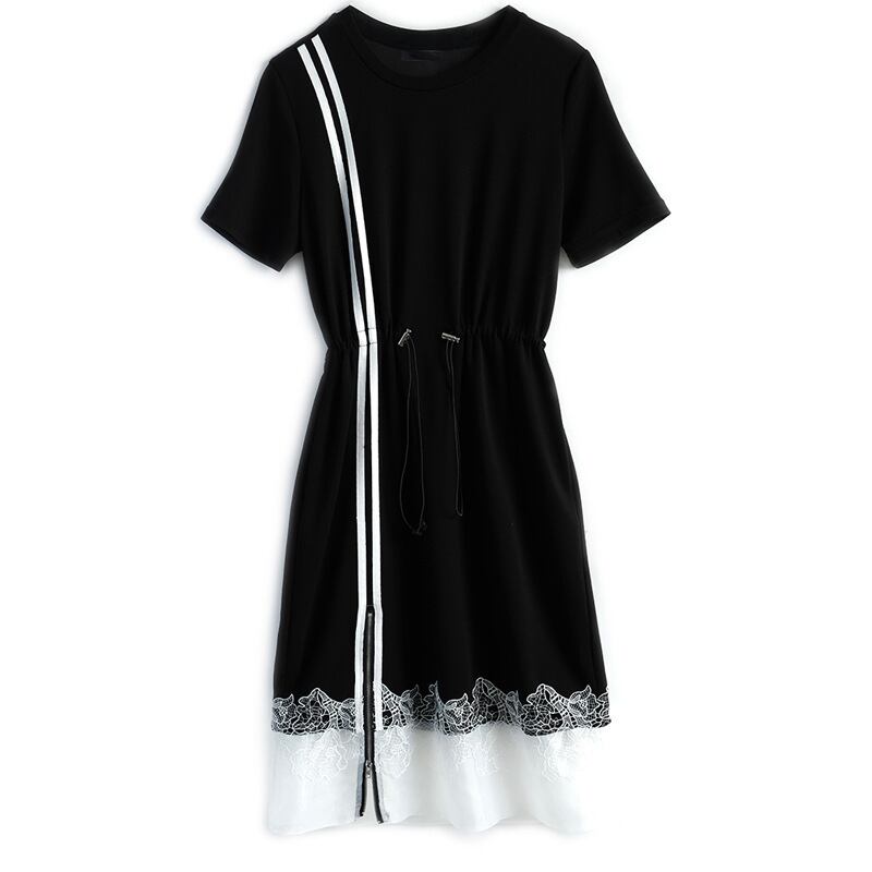 女性レースドレス 夏半袖ストライプパッチワークジッパールーズドレスS-3XL女性Tシャツドレスvestidos ショート ハーフスリーブ サマー 夏物